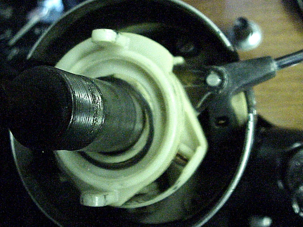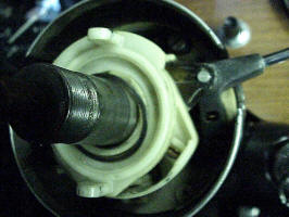 Now you are down to the complicated part. Remove the spring washer (see arrow) holding the plastic parts together.