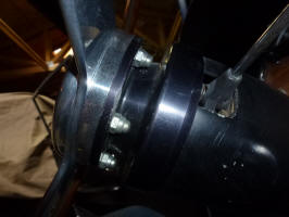 When I went to put the plate that holds the stalks in place, I found out a couple of things. One, the thickness of the new stalk end prevented me from putting on the plate that goes under the E-ring. I ended up thinning the stalk by about .075". Here you can see the extra space in the right picture. I reported this to Verell and I'm sure that he'll make an adjustment to the mold.