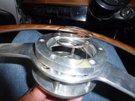 Then the steering wheel, spacer, horn surround, horn button and spring come loose.
