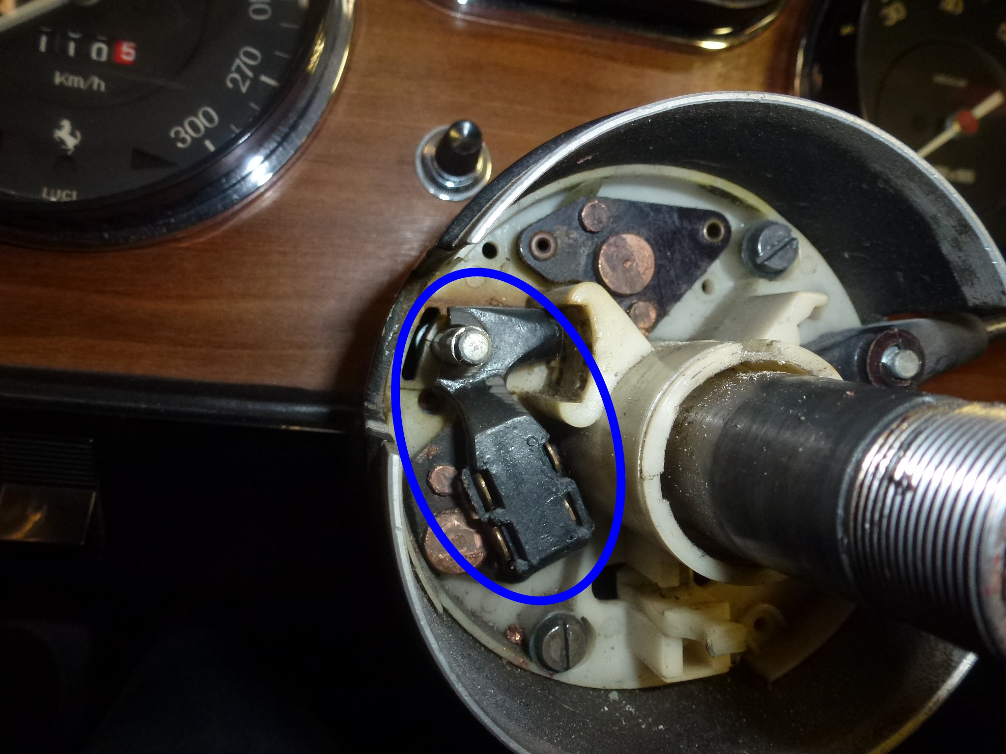 I got my stalk back from Verell with the new end. In addition, he included some lubricant with a high amount of copper in it. He had cleaned the U-shaped contacts and I cleaned the ones in the car in addition to lubricating them once it was assembled.