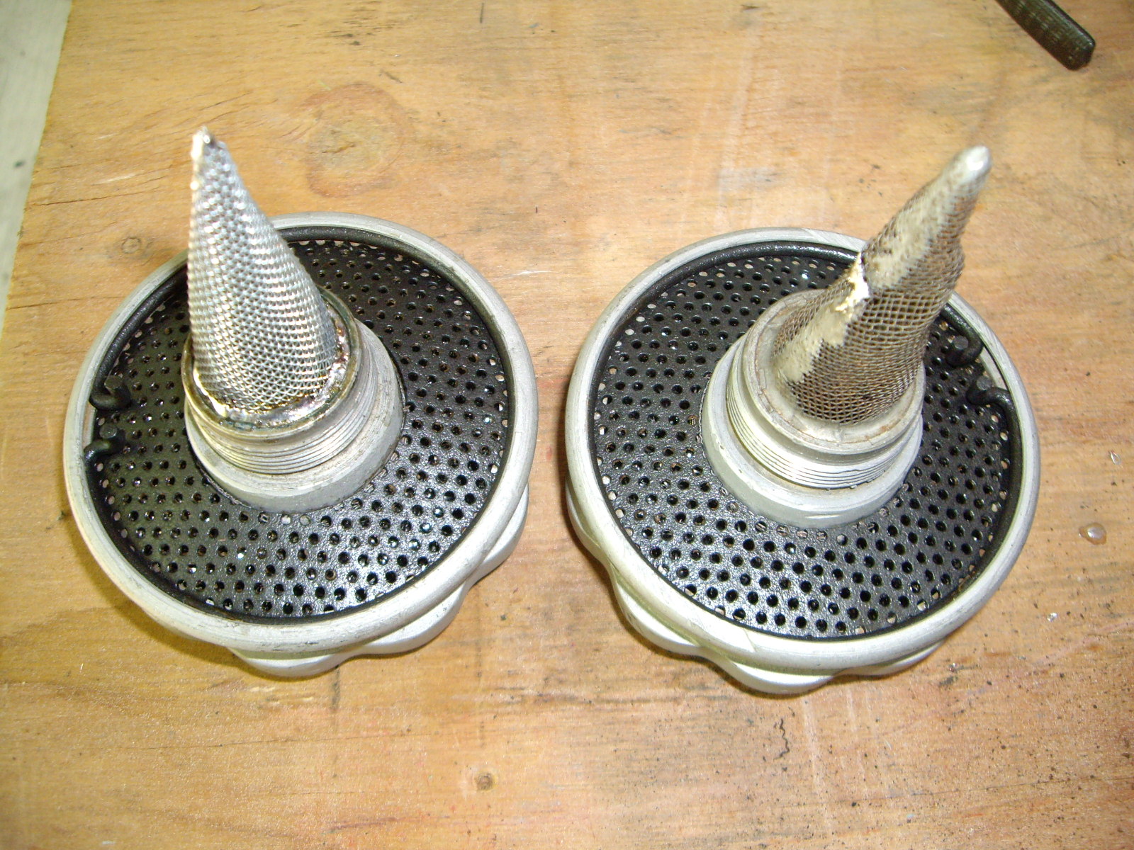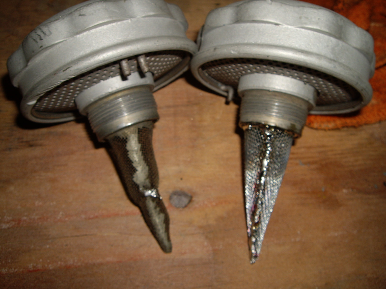 The second item was that the screen on one of the caps had been broken off. I measured the mesh and came up with about 25 hole per inch. I would have thought that the screening material would have been brass, but a magnet showed it to be steel, so ordered a piece of zinc plated steel screening that had 24 holes per inch from McMaster-Carr. You can't buy steel screening at a hardware store anymore. All they sell is either plastic or aluminum.