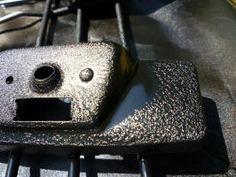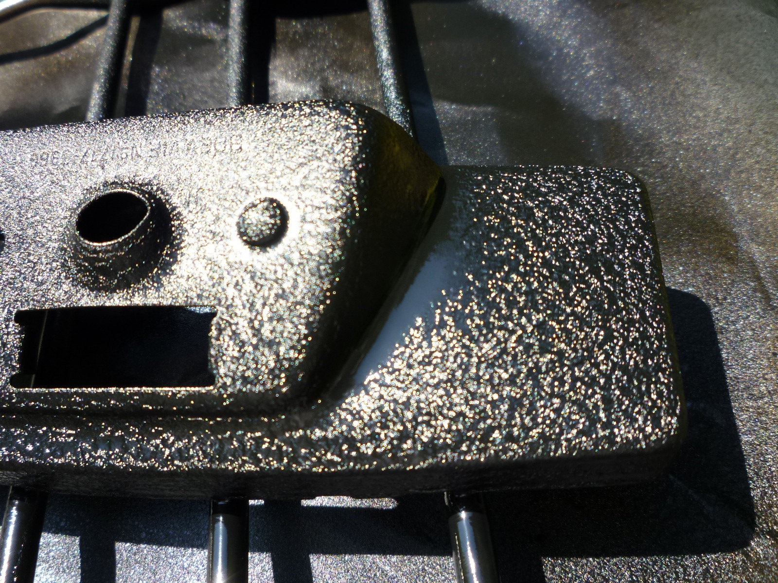 I wrinkle painted the throttle shaft supports the other day. For small parts like these, I find that just using a heat gun to pre-heat the parts and then to cause the wrinkle effect to happen works fine.
