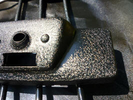 I wasn't quite so happy with the results on the horn compressor. I think that there were 2 problems. First, I didn't pick it up when spraying the paint, so the coats weren't as even as they could have been. Second, the horn compressor is a heavy mass of metal and I don't think it was as hot as it should have been. This is going into my 330, well hidden back behind the grille, so I'll probably just let it go. Otherwise, I could just strip it and start over.