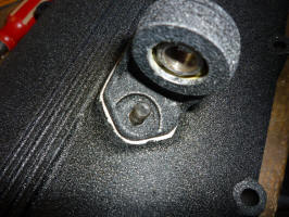After getting the correct sized studs in place, I positioned the throttle shaft supports and noticed that they didn't cover the whole flat area that I masked off when I wrinkle painted the cover. So I'm going to have to redo that area. I'll try just masking off the part already painted and just wrinkle paint the little edges, but I might end up doing the whole valve cover and supports again so it will look right.