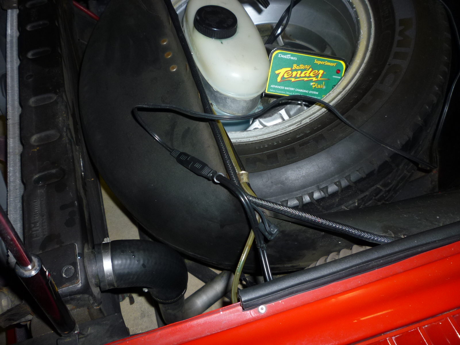 After a couple of months , the Optima was needing a periodic recharge, so I hard wired in leads for a Battery Tender and ran the plug out the opening near the left headlight by the spare tire tub. This way, I could just sit the Battery Tender in the spare tire well and keep it plugged in, yet easily remove it when I wanted to drive the car. Within a year of purchase of the Optima, the Optima would not charge up using a regular charger and the Battery Tender died at the same time . Since the battery was still under warranty, I shipped it back to Ohio (I bought it online) at my expense. They replaced it with a new one, which worked for the next six years, though I was keeping a Battery Tender on it whenever the car was not in use. BTW, Battery Tender also replaced the unit under their lifetime warranty.