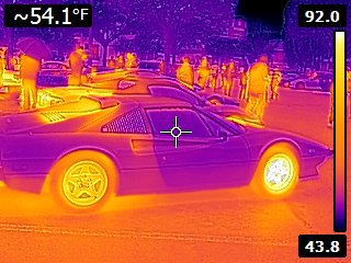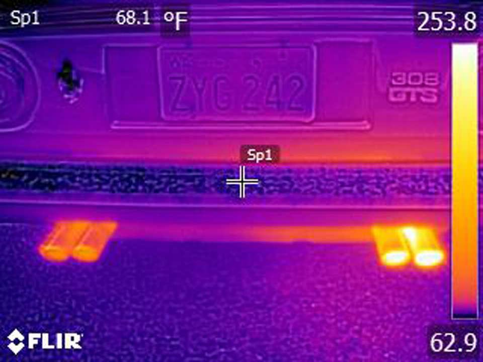 I took the 308 to the Exotics cars and coffee at Redmond Town Center. On the way there, I noticed a drop in power and assumed that one of the banks stopped working. When I got to the cars and coffee, a friend happened to have an infra-red camera with him. A quick look told the tale: