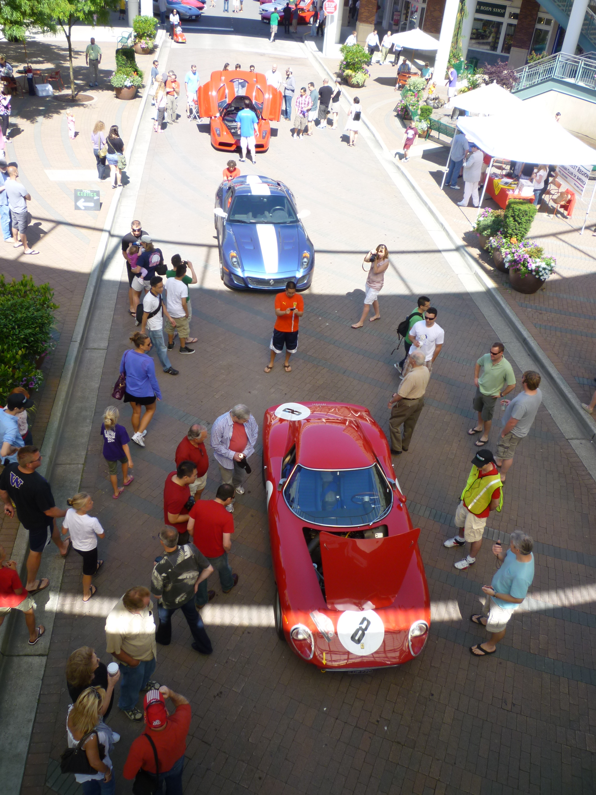 It was Ferrari day, so the featured cars are staged down the main center road of the center.