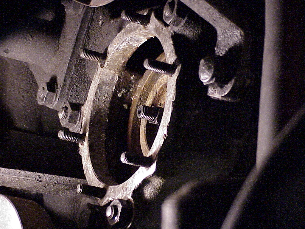 The water pump has always leaked some ever since I rebuilt the engine in 1983. However lately it's been getting worse and worse. Unlike most cars, you just don't buy a new or rebuilt water pump and replace the whole thing. In my case, the carbon seal that prevents leakage at the back of the pump wasn't sealing properly. This was apparent as the water was leaking from the seep hole at the rear of the pump.