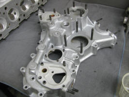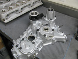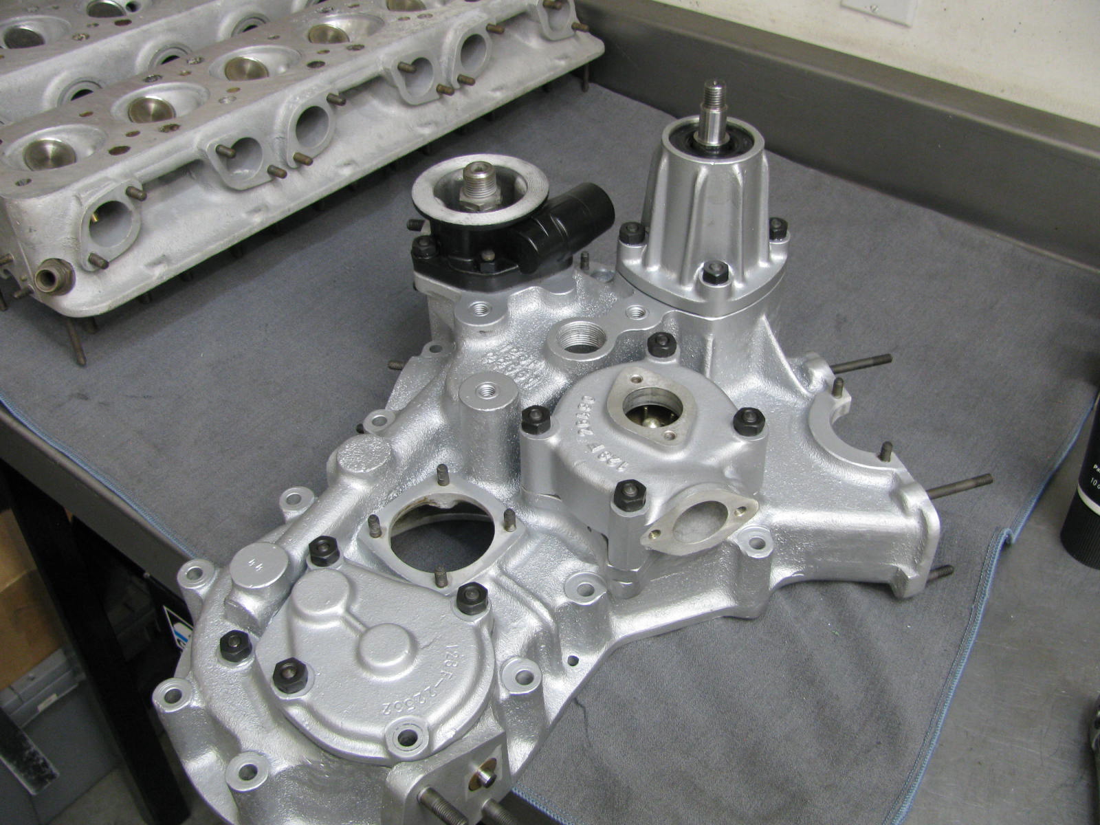 The front cover, chain tensioner oil and water pumps were disassembled, cleaned, painted and re-assembled.