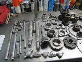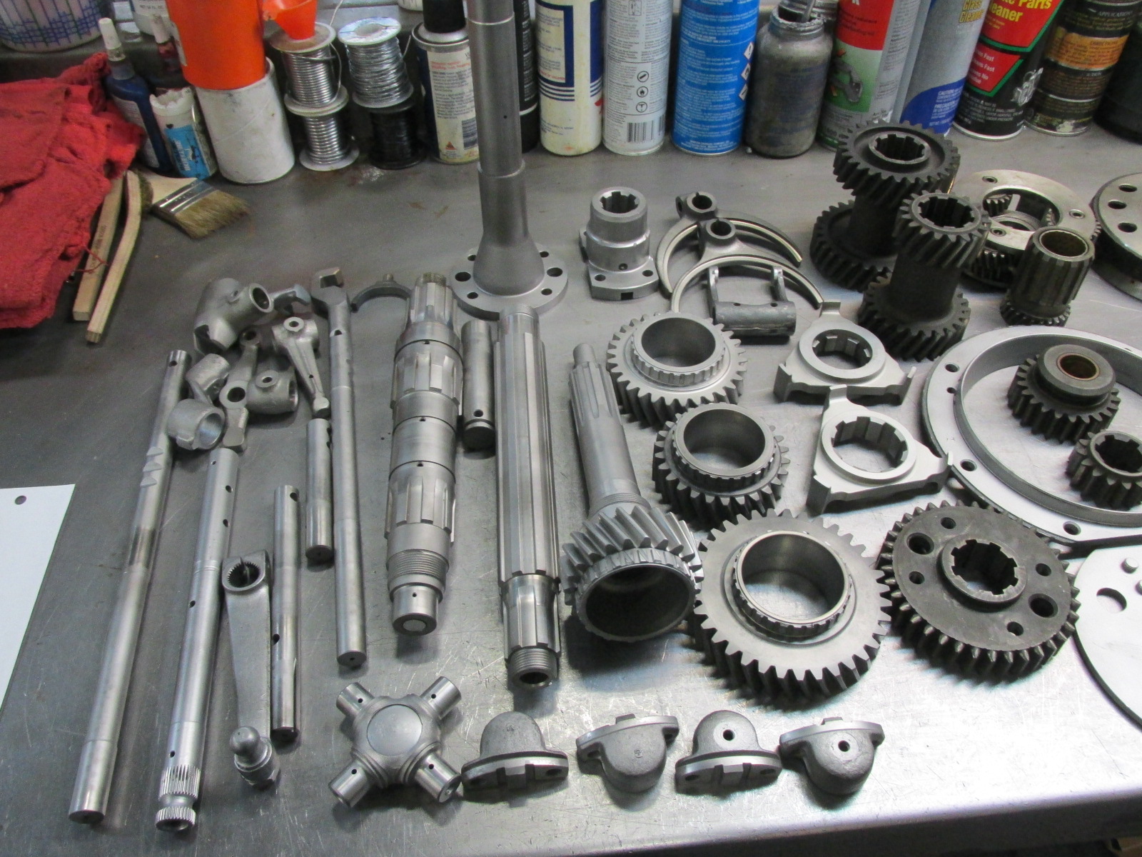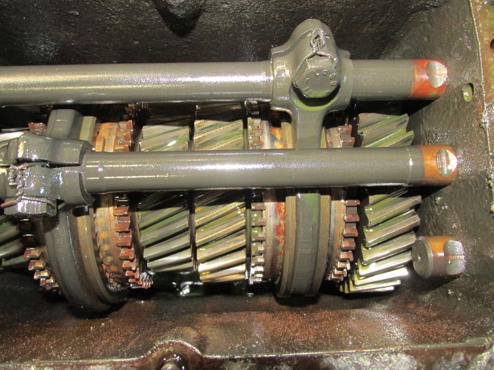 They pulled the tops off the transmission case to look at the condition. It had been sitting for so long (~30 years), that everything above the oil level was rusted. So it is going through a complete rebuild, including bearings and new synchros.