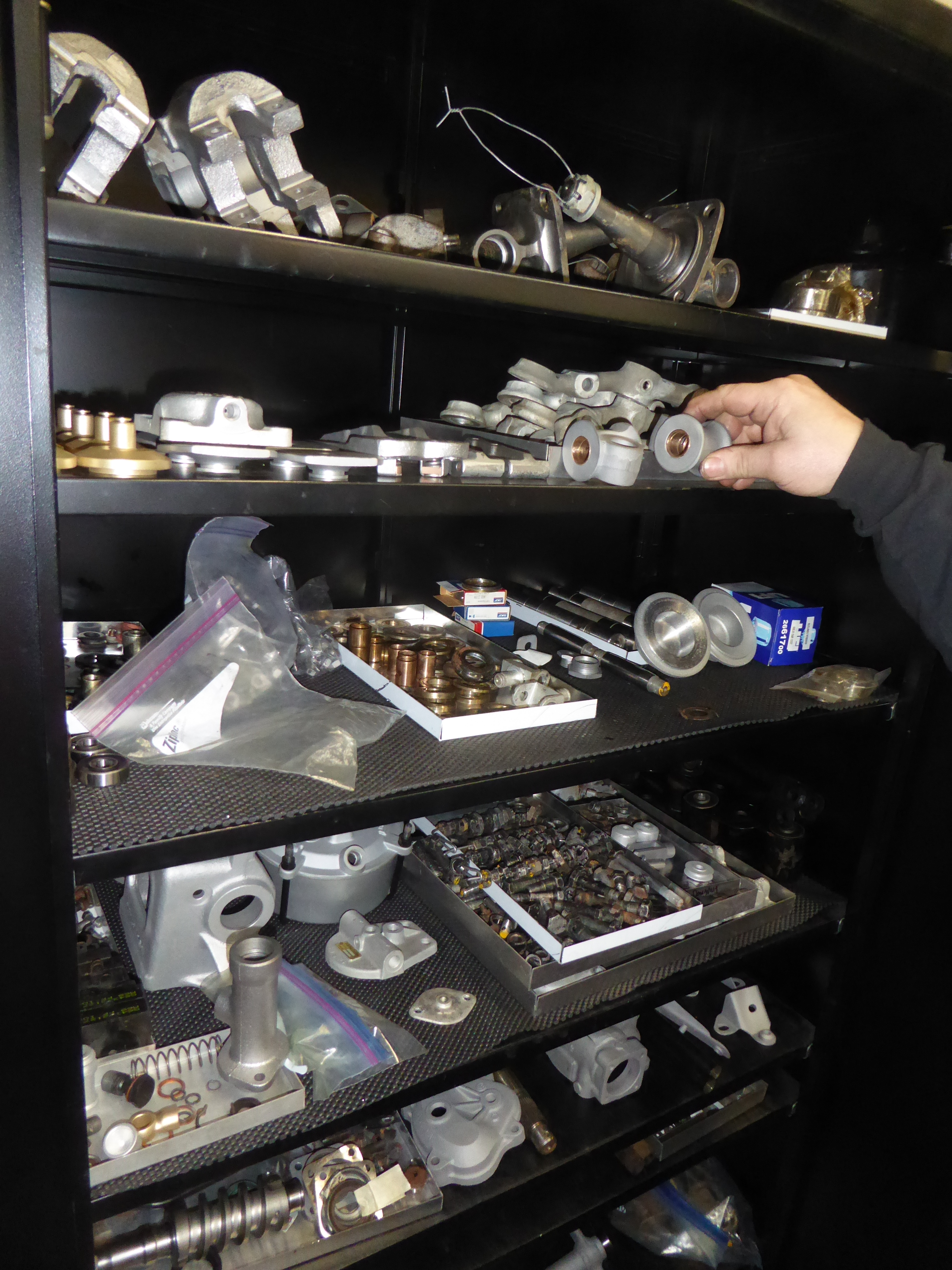 Among other things going on is the inventorying. Every part is laid out, photographed with a number, then stored away. That way, there are no questions about what parts were supplied, or where they went to. The original condition is documented at the same time. These included all of the Cheney clamps I'd accumulated over the years that I already had restored.