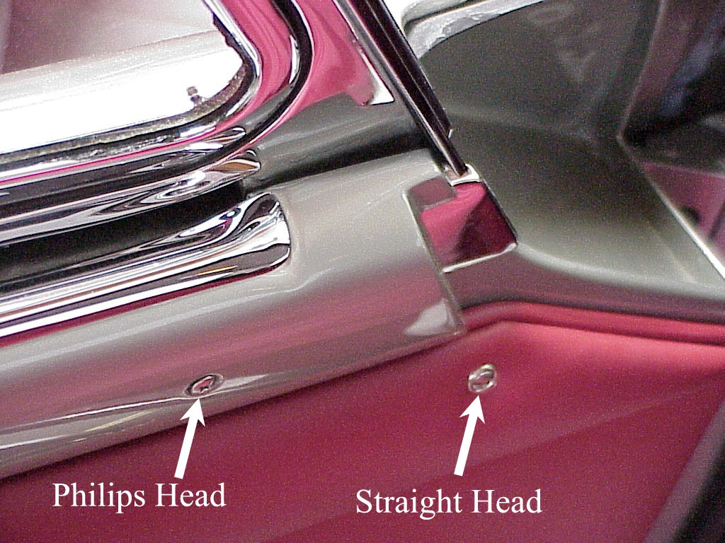 The other quandary I have is the mix of both Philips head and straight slotted head screws. I can't believe that Pininfarina would use a mix, depending on the trim location with the worker having to change screwdriver types as he changed the part he was installing. To help me understand, I reviewed pictures I took of 2017GT, a FCA platinum winning concours car.