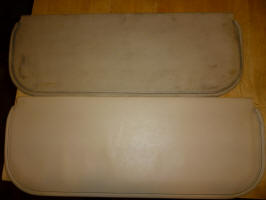 First I had to clean the vinyl on the sun visors. As you can see, they were pretty dirty as the top one hasn't been cleaned yet, while the bottom one has. I find that 409 cleaner and a bristle brush do wonders on cleaning vinyl.