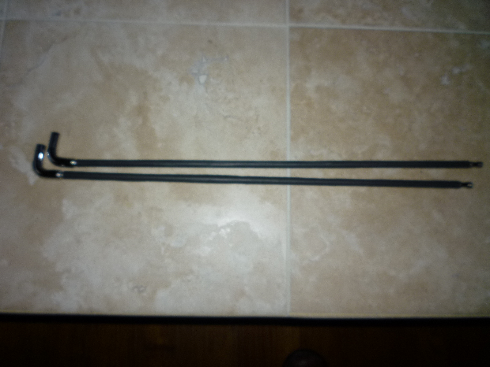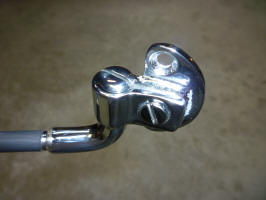 The next problem was that the rods fit through a framework in each visor. The chrome plating made them enough thicker so they wouldn't go in. At this point, I have a couple of choices, neither of which is good. I can grind down the rods to make them undersize and get them re-chromed so they end up the proper diameter to fit into the framework. The other choice is to try and enlarge the framework holes. A quick pass left me thinking that the latter won't work.
